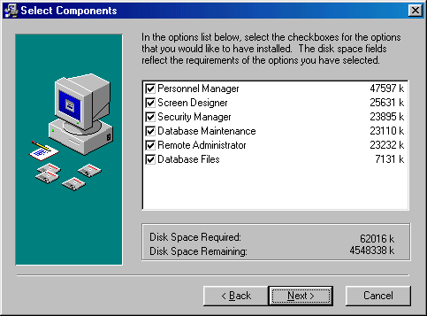 Click the next button to continue. You will then see the screen opposite displayed. As this is the administrator’s PC it is recommended that you leave all items selected. For further details on what each application does, see the user’s guide.